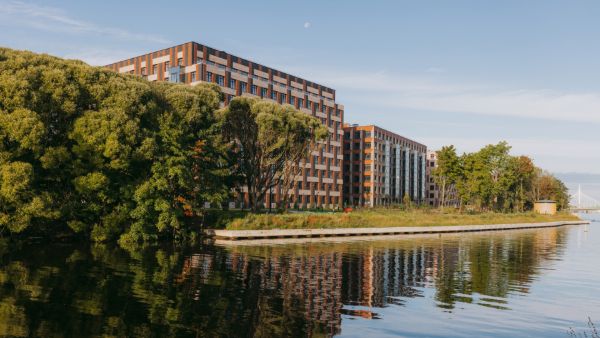 Из окон открываются виды на парк на Крестовском острове, берега Невы и Финского залива. Поблизости от комплекса расположены зеленые зоны и водоемы: Приморский парк Победы с каскадами прудов (Лебяжий, Северный, Южный), Петровский парк с Петровским прудом.
